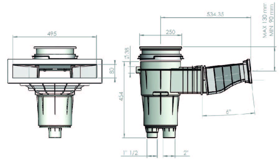 Anschlüsse: | 1,5" Innengewinde zum Filter, 2" Innengewinde vom Ablauf |