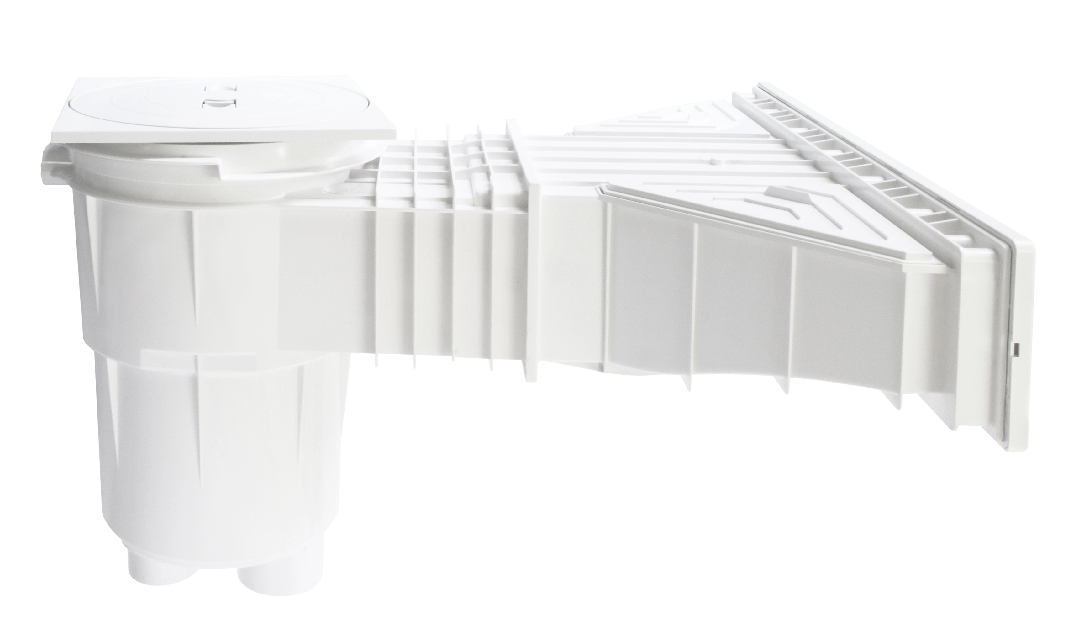 Dieser elegante Skimmer ist ausschließlich für GFK-Becken geeignet, für einen extra hohen Wasserstand.