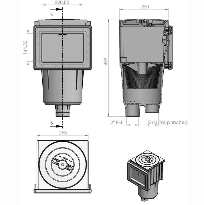 TIPP: Mit einer Tiefe von 25 cm ist dieser Skimmer besonders zum Einbau in Styroporbausteine geeignet.