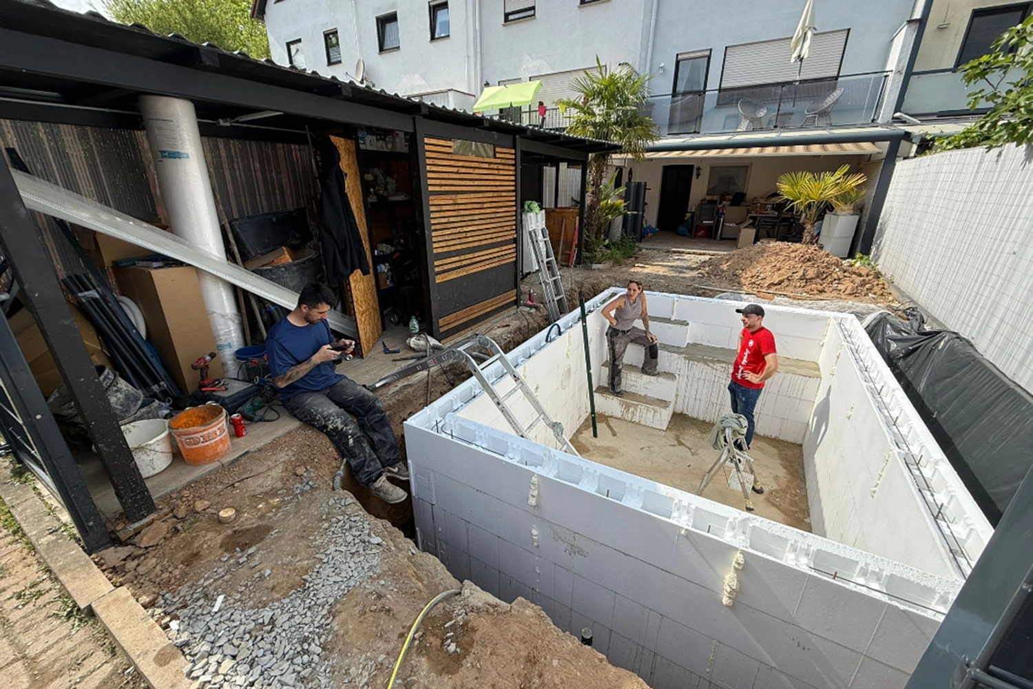 Das schwierigste beim Poolbau war der Aushub da wir nur begrenzt Platz haben.