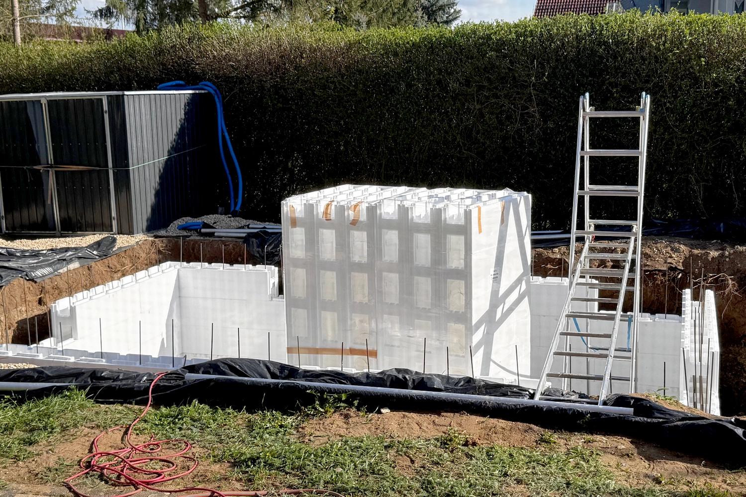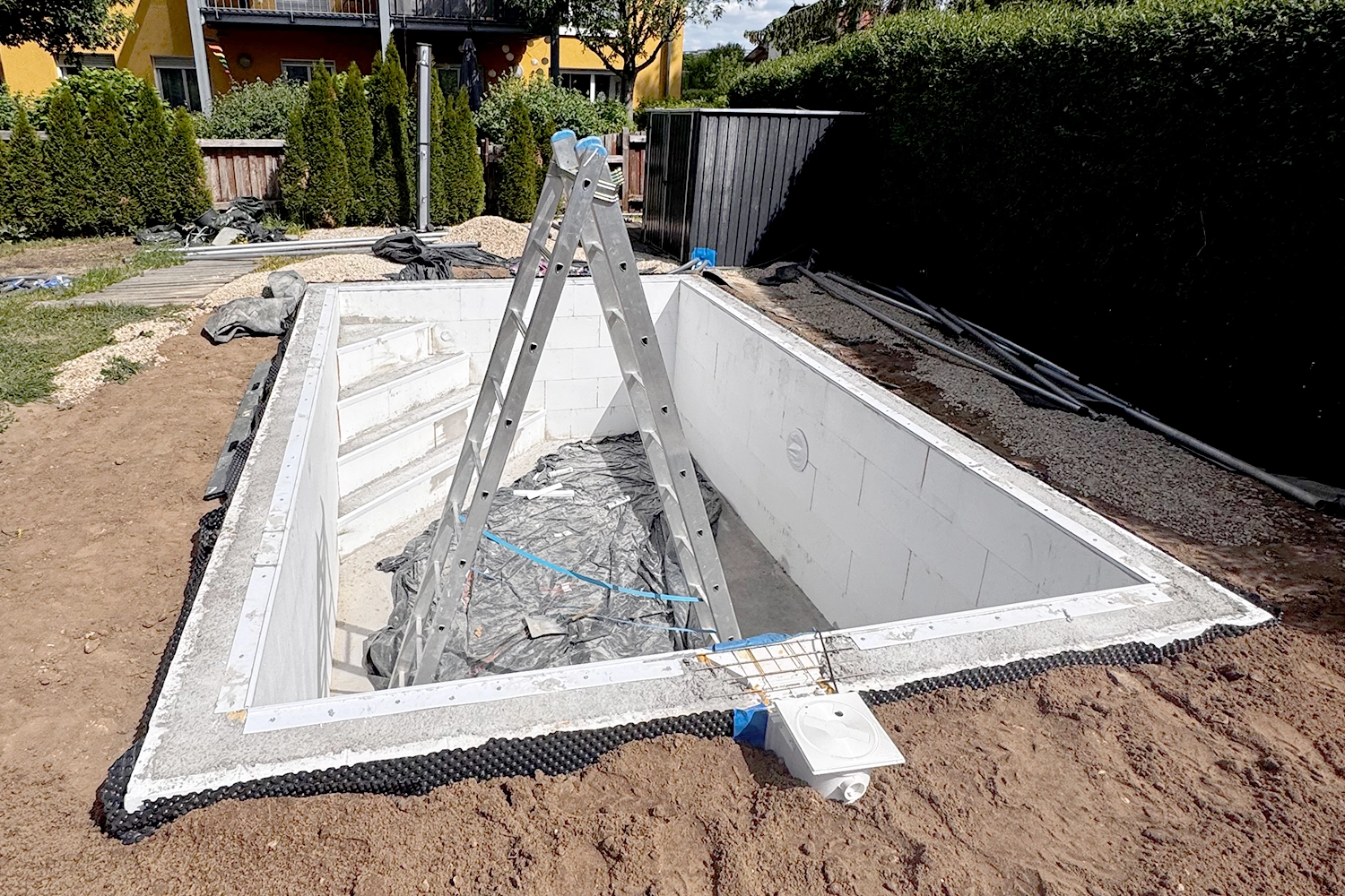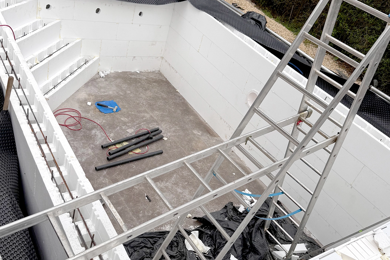 Erdaushub, Bodenplatte, Beckenrandsteine