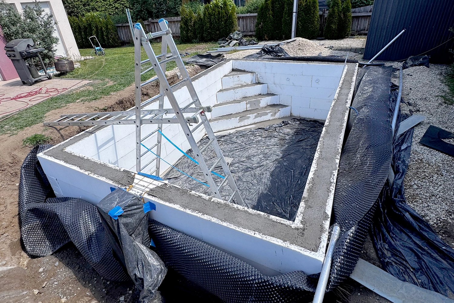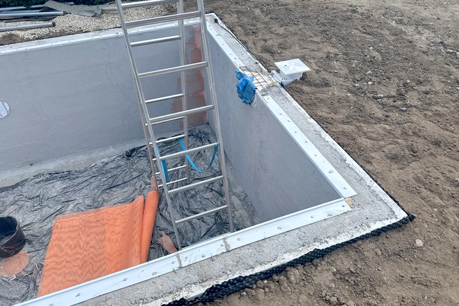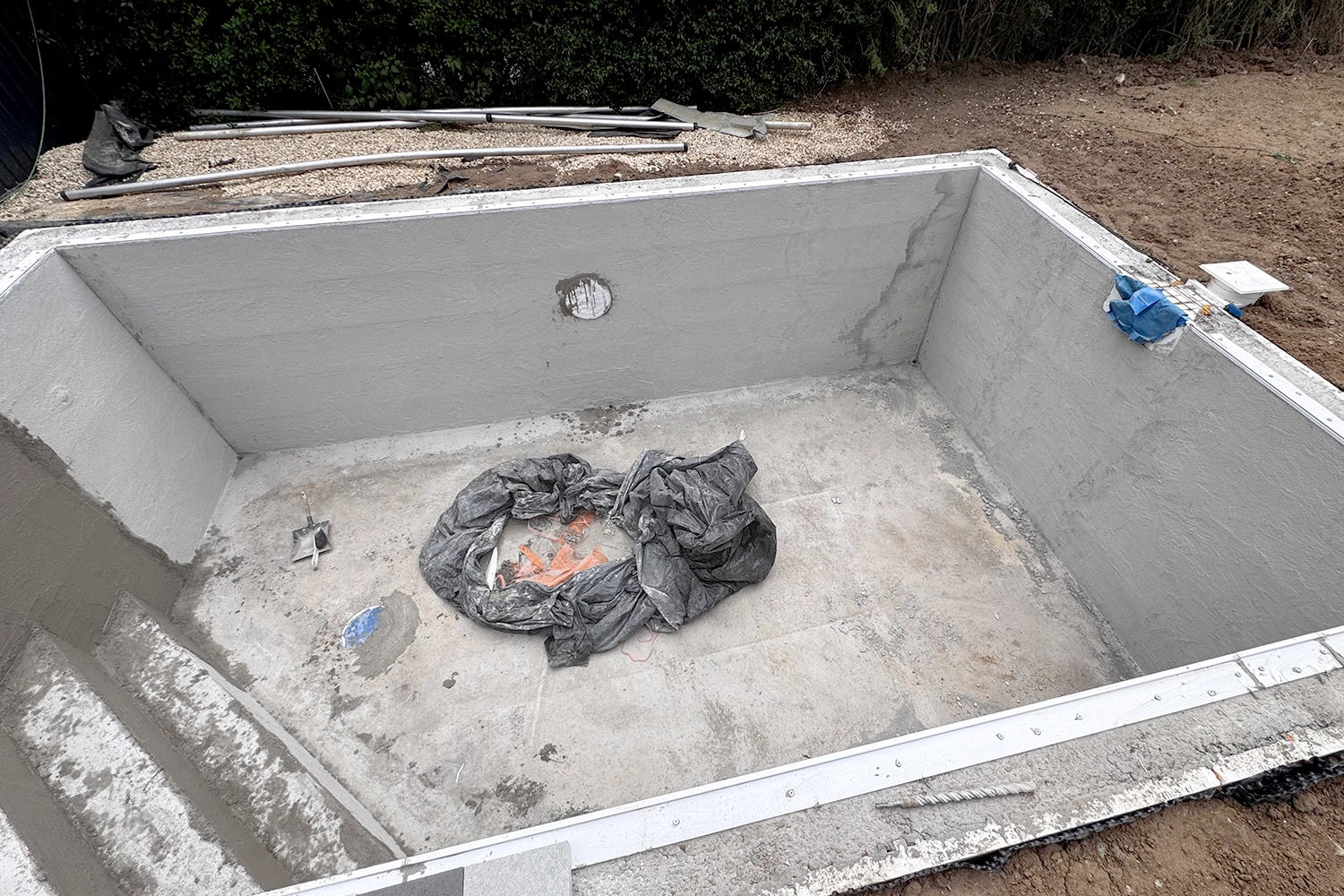 Erdaushub, Bodenplatte, Beckenrandsteine