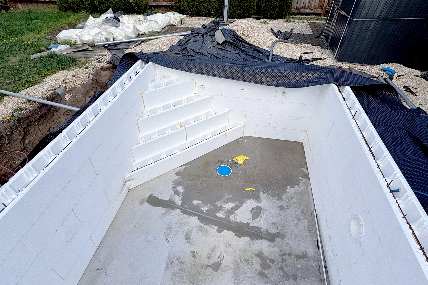 Styroporpool, 1000 x 400 x 120 cm, Basis-Bausatz mit Ecktreppe links