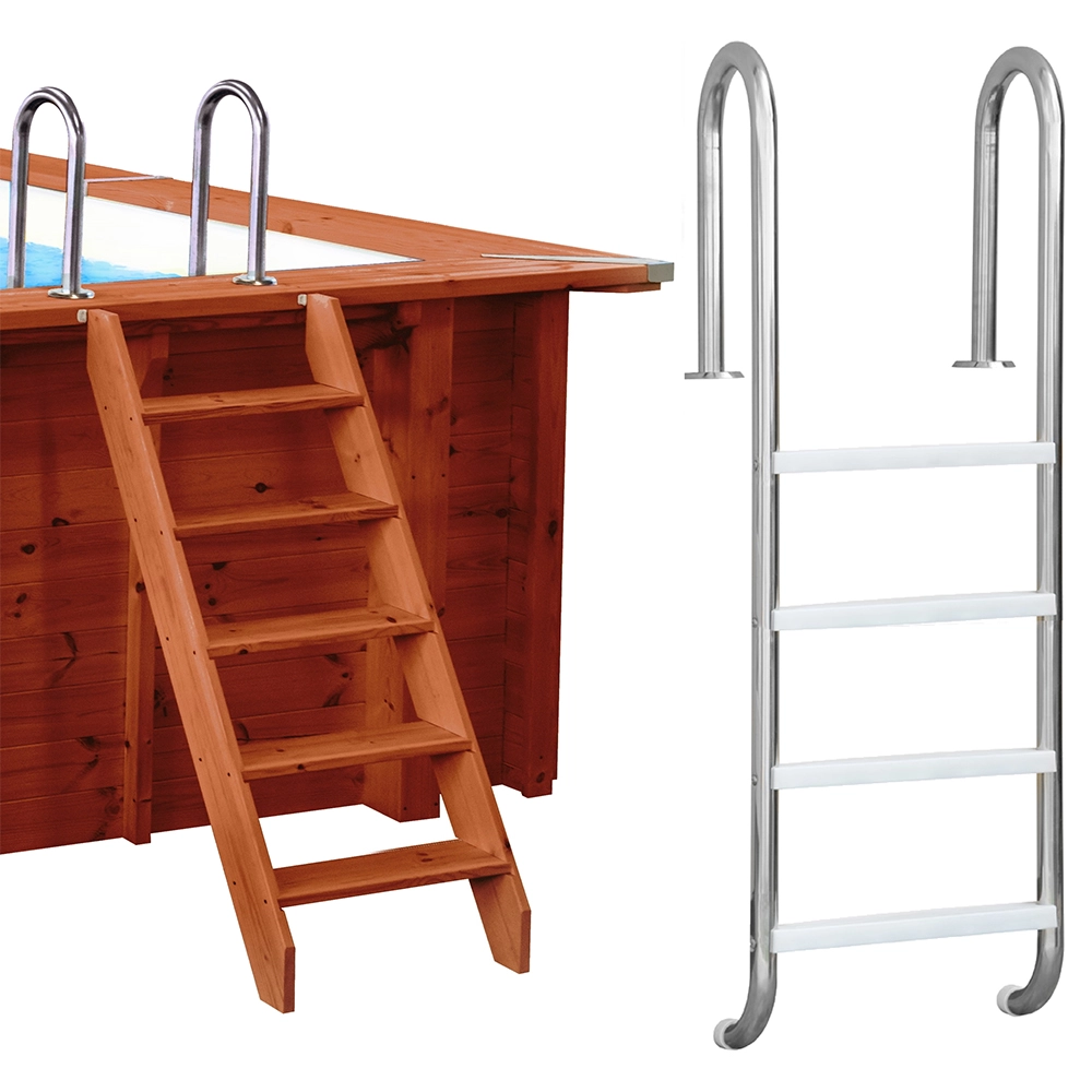 | Im Lieferumfang enthalten: | (genauere Infos siehe oben im Tab "Ausstattung"), 2 Breitmaulskimmer, Einlaufdüse, Holzbohlen: massive, behandelte Kiefer (Klasse IV), Innenhülle aus PVC mit Keilbiese (P3), LED-Beleuchtung, Leiter: Edelstahl V2A 4-stufig innen I Holz 5-stufig außen (abnehmbar), Schutzvlies |