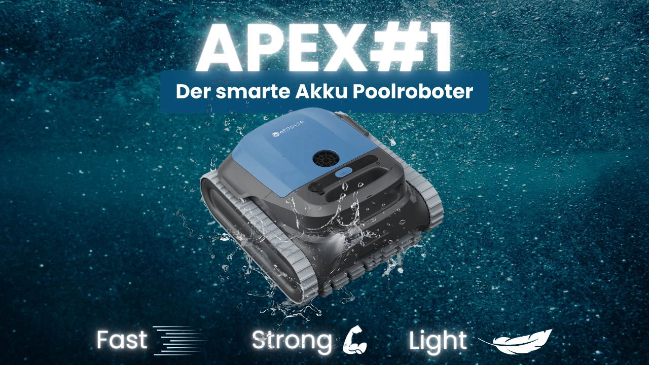 Der APEX #1 Akku-Poolroboter setzt neue Maßstäbe in der kabellosen Poolpflege. Mit beeindruckender Reinigungsleistung, intelligenter Navigation, App-Steuerung und einem besonders starken, im Servicecenter wechselbaren Akku bietet er alles, was moderne Poolbesitzer erwarten – und noch mehr. Entwickelt für Pools bis 12 m Länge oder 140 m² Fläche, reinigt er effizient und autonom – für kristallklares Wasser bei minimalem Aufwand.