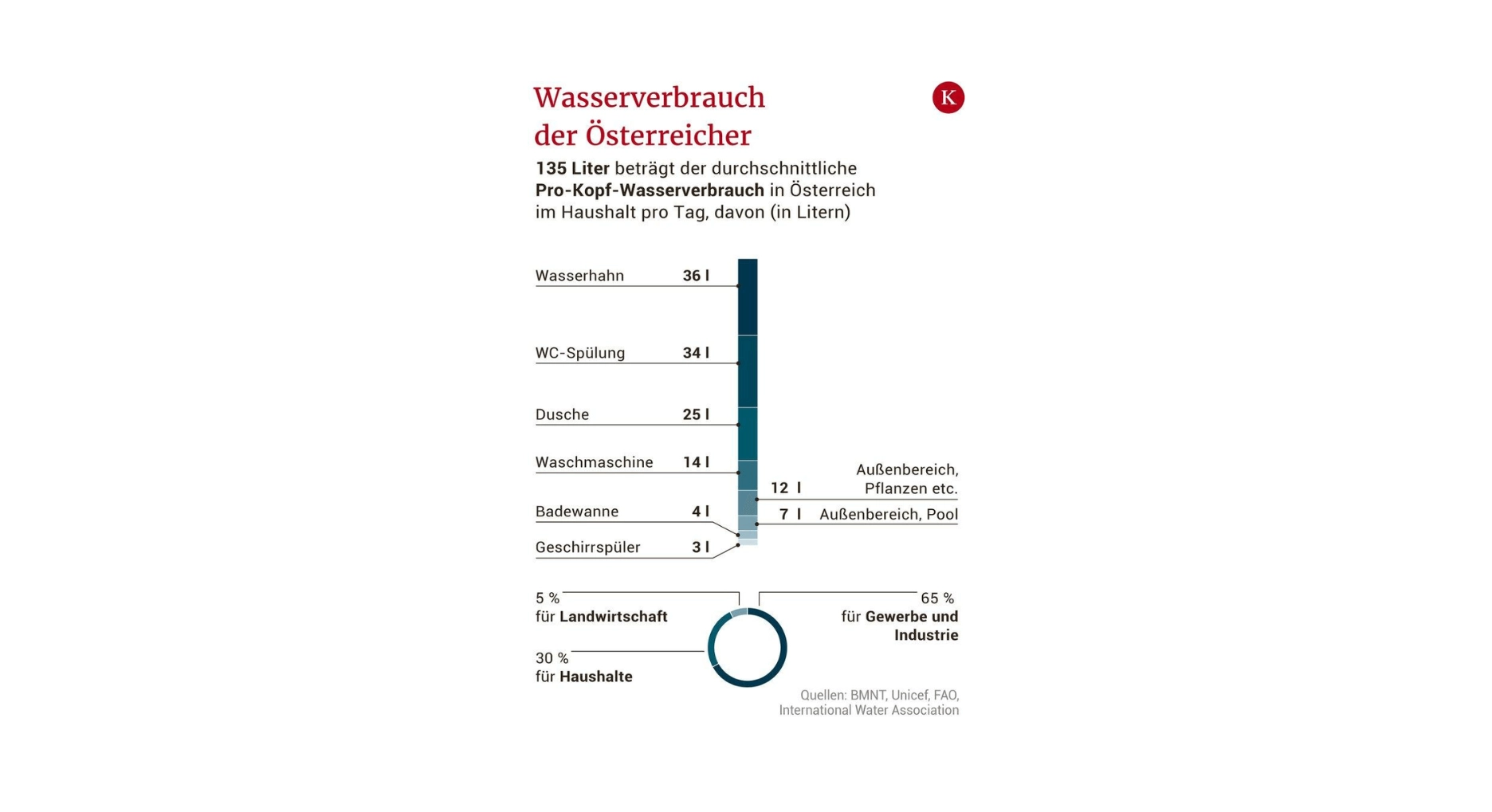 Die Verteilung des Wasserverbrauchs in Österreich/Deutschland