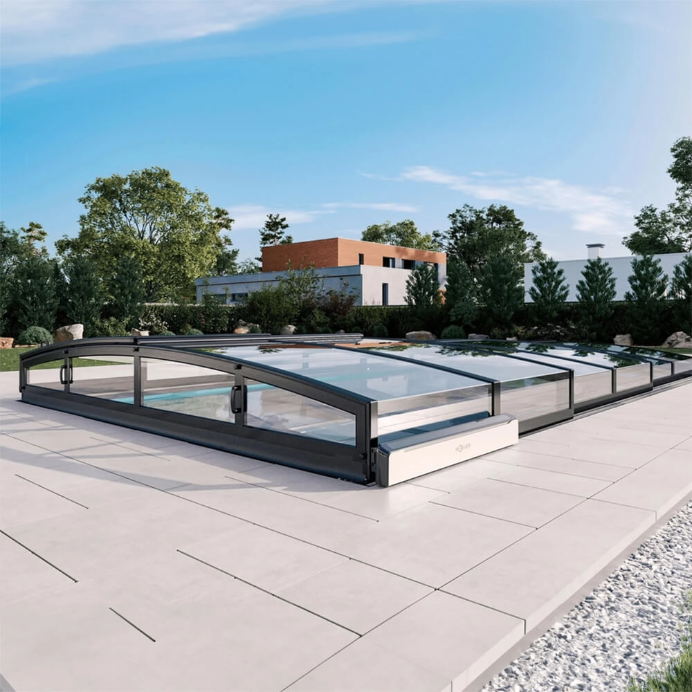 - Wetterunabhängigkeit: Unabhängig vom Wetter können Sie Ihre Poolüberdachung mühelos öffnen und schließen. Das ist besonders vorteilhaft bei regnerischem Wetter oder starkem Wind.