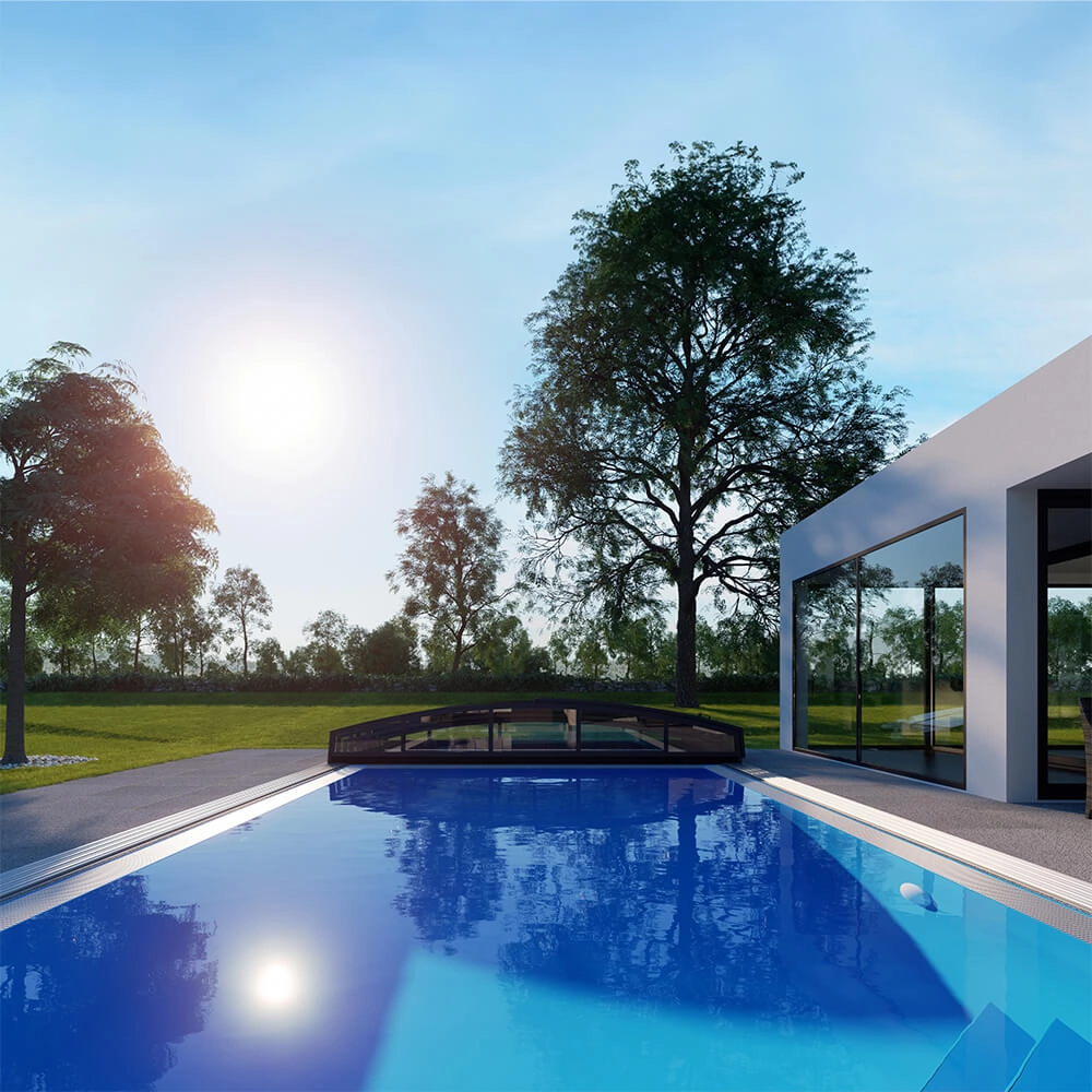 Poolüberdachung AIR, mit Polycarbonat Klarglasplatten
