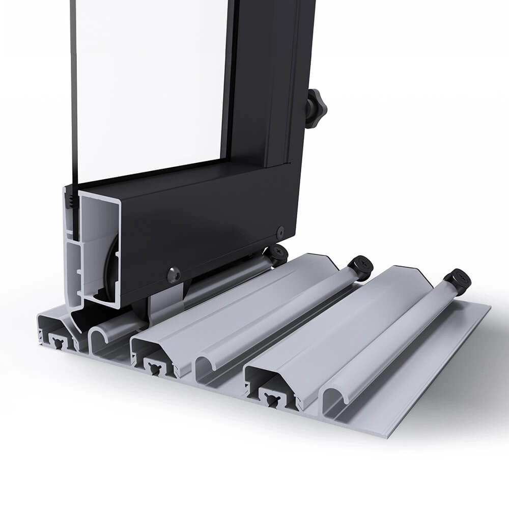 Besonderheiten / Vorteile: | Abschließbare Schiebetür im ersten Segment, abnehmbare Frontwand, begehbare Schienen, doppelseitige Schienen, durchsichtiges, kompaktes Polycarbonat 4 mm mit UV-Schutz, einseitige Schienen (nur bei Profilfarbe Carbon) |