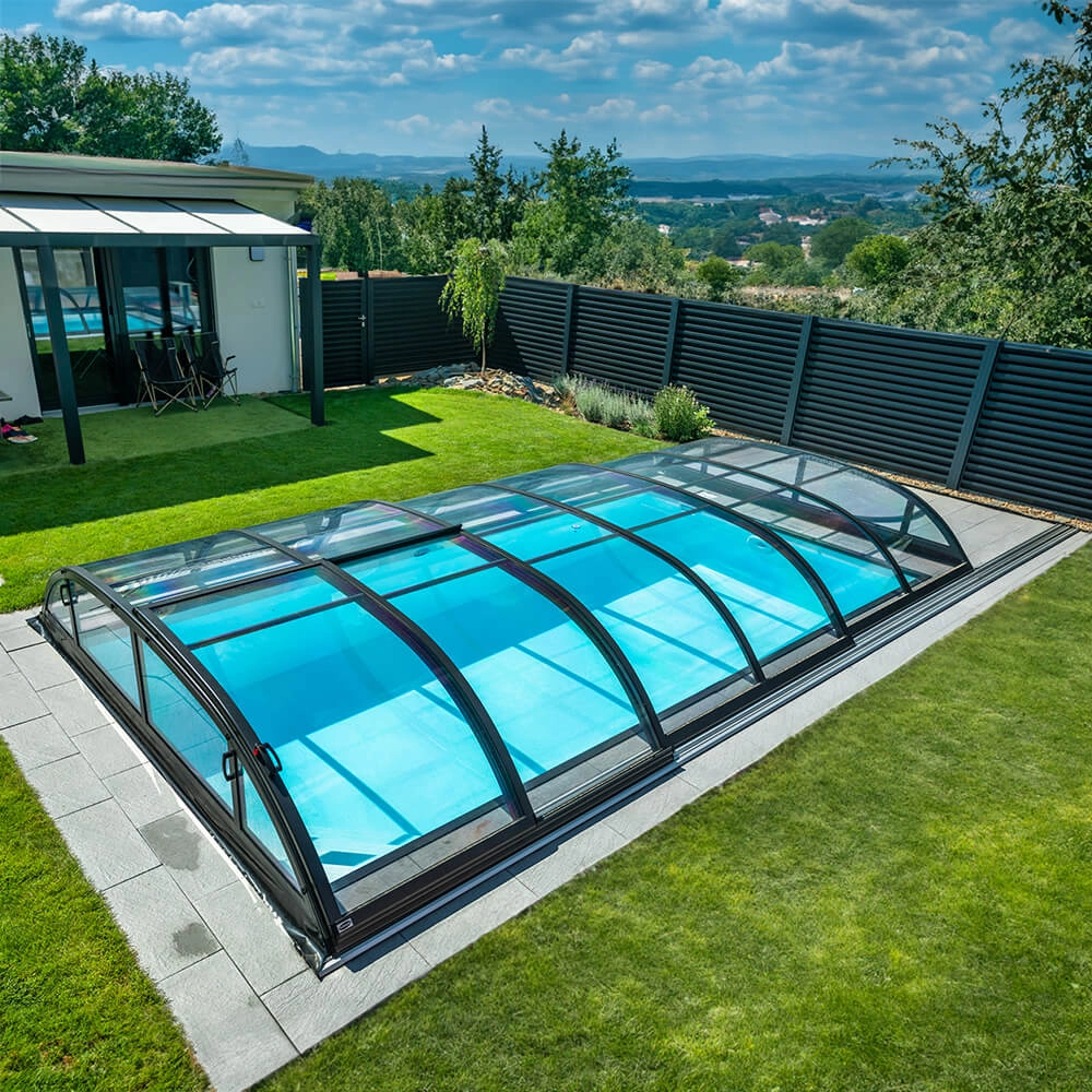 Sonder Überdachung, DALLAS, 750 x 428 x 120 cm, anthrazit, Klarglas 4 mm klar