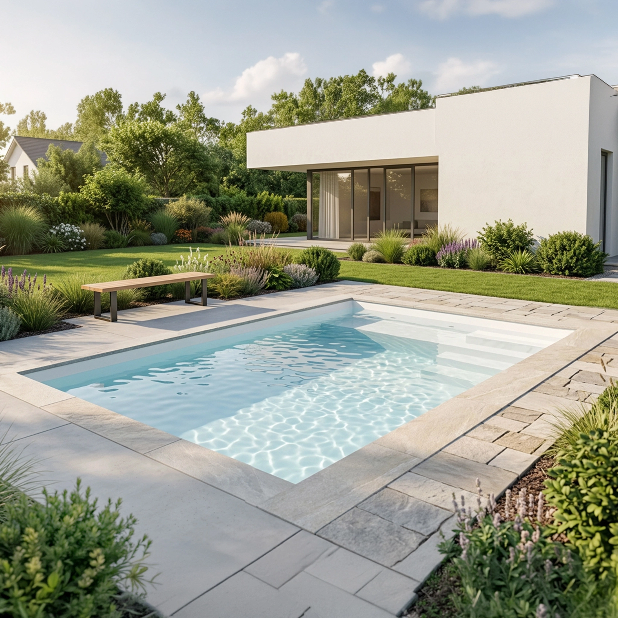 Familie P. aus Neuried Styroporpool mit Treppe und Sitzbank
